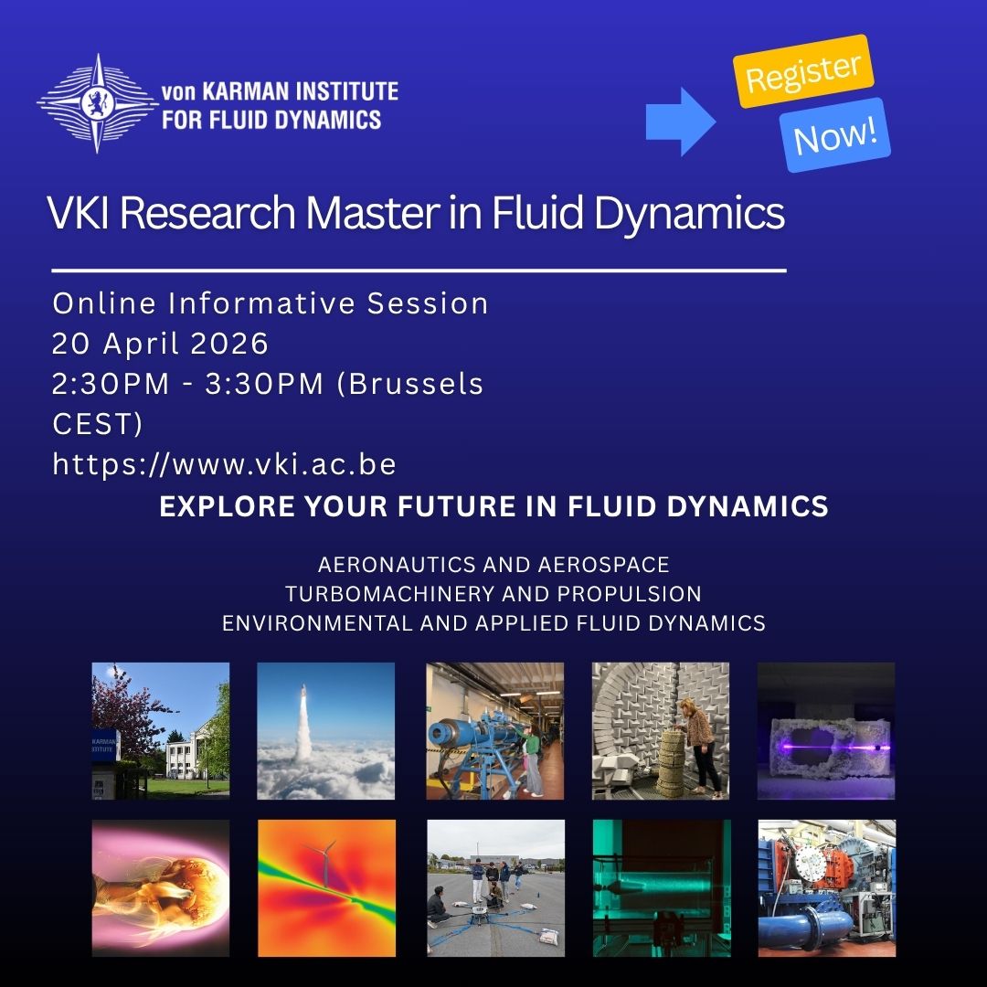 Then don’t miss this online informative session dedicated to the VKI Research Master in Fluid Dynamics, offered by the von Karman Institute for Fluid Dynamics (VKI), a renowned Higher Education Institution just south of Brussels.